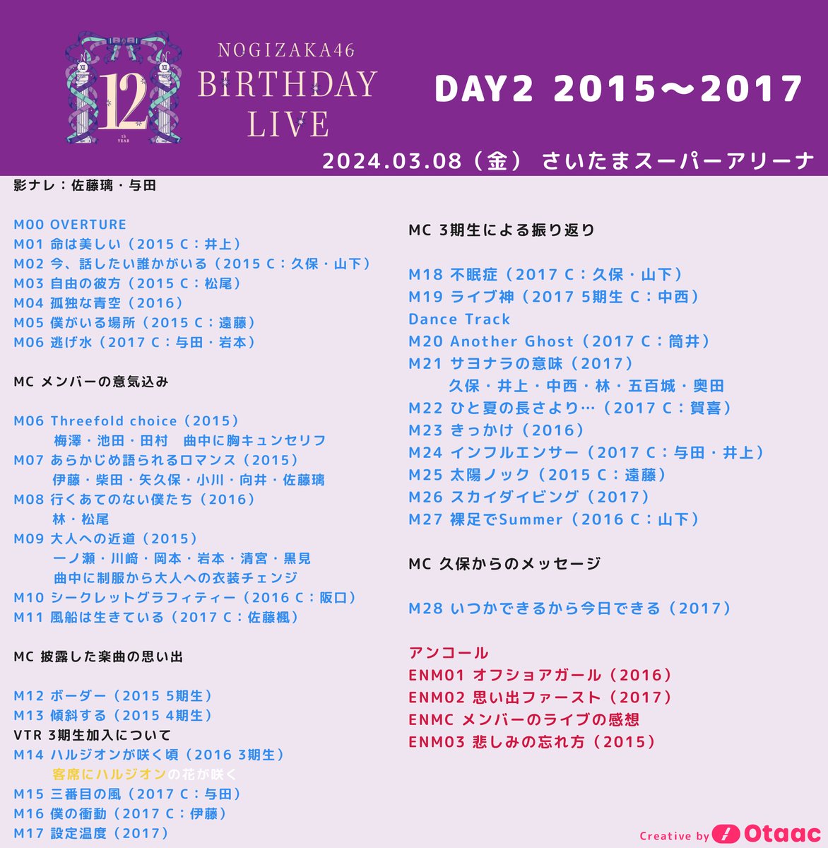 💜セットリスト DAY 2:2015-2017💜