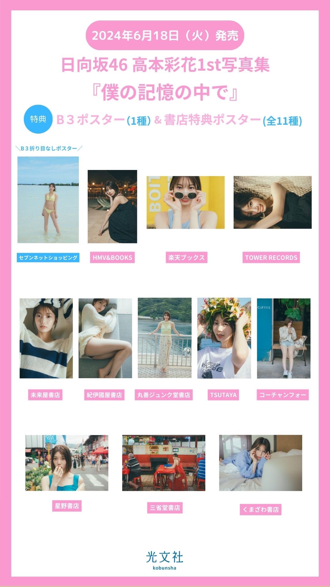 #高本彩花1st写真集 「僕の記憶の中で」の書店チェーン別特典が決定いたしました🍒📸