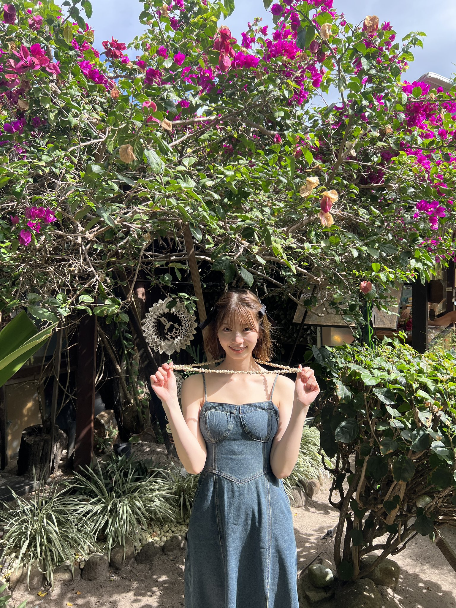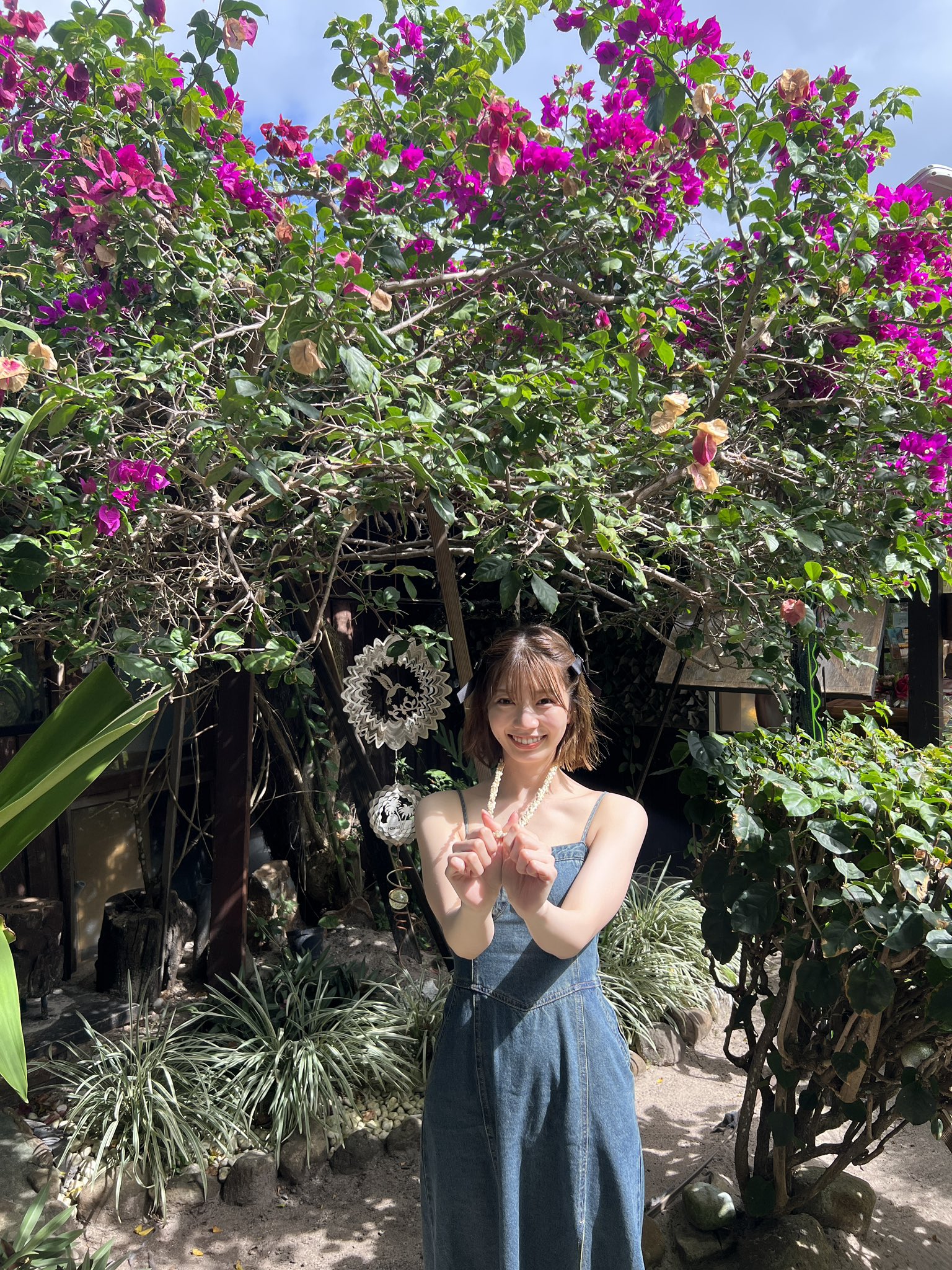 お花とあやちぇり、タヒチの空気すべてがベストマッチしたかわいいカットをお届けします🫰🌼🩷🩷🩷