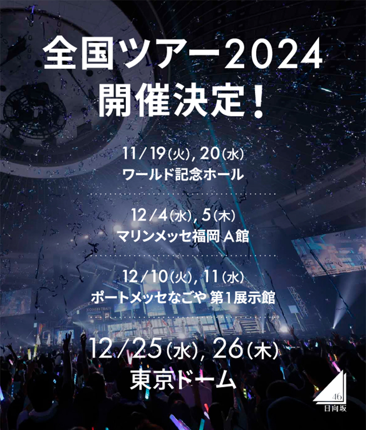 本日、ひなたサンマリンスタジアム宮崎のステージ上で発表がありました通り、「全国ツアー2024(タイトル未定)」の開催が決定しました。