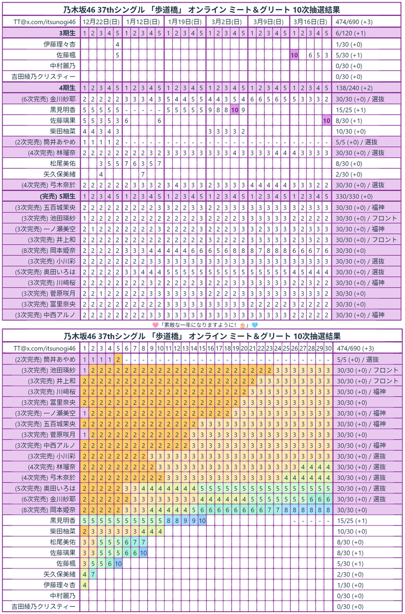 乃木坂46 37thシングル「歩道橋」ミーグリ 10次抽選結果#乃木坂46 #Nogizaka46#乃木坂46完売表#乃木坂46_歩道橋 pic.twitter.com/mcaJX1SFXe