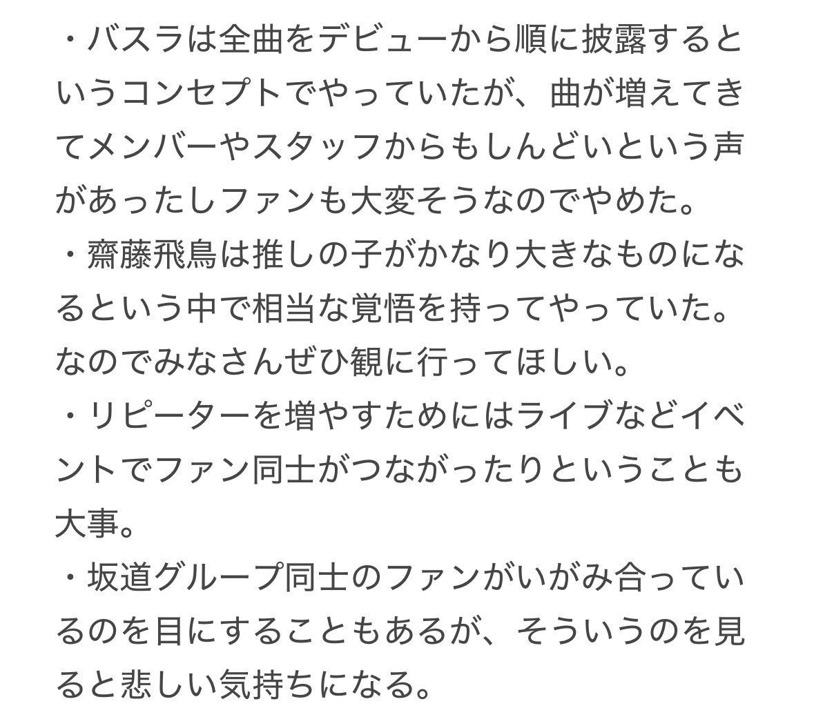 バスラの全曲披露はやめたとハッキリ明言もしてたんだな